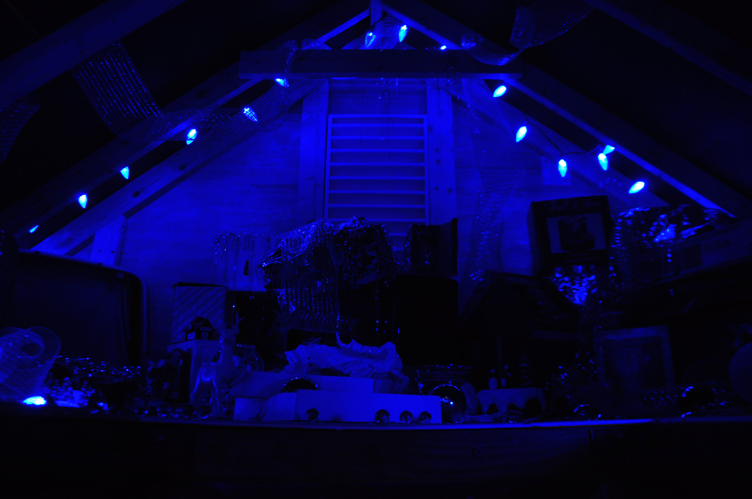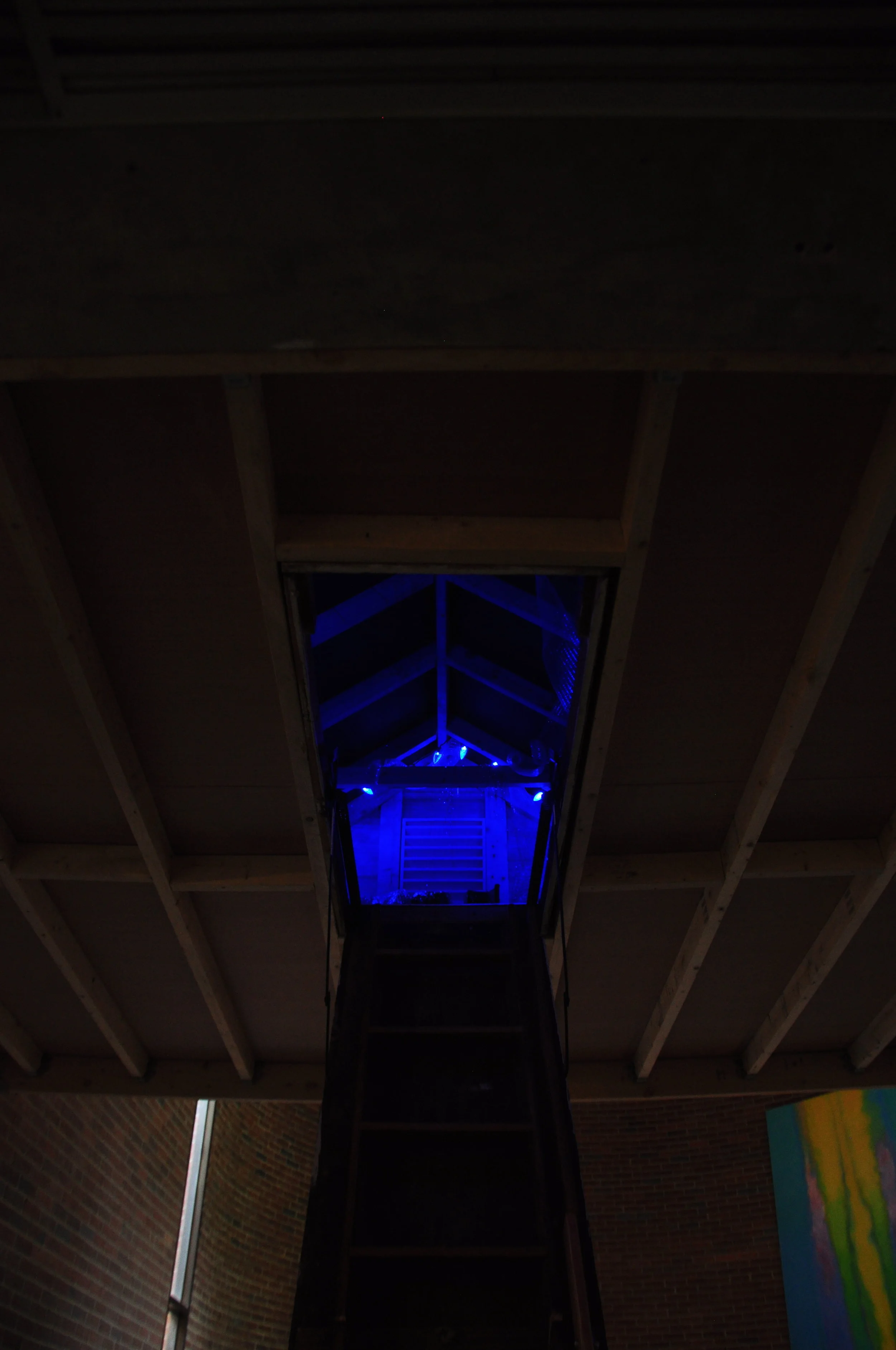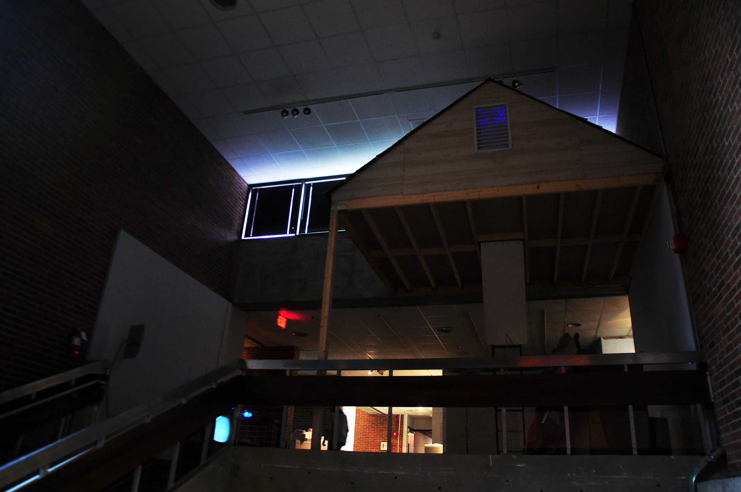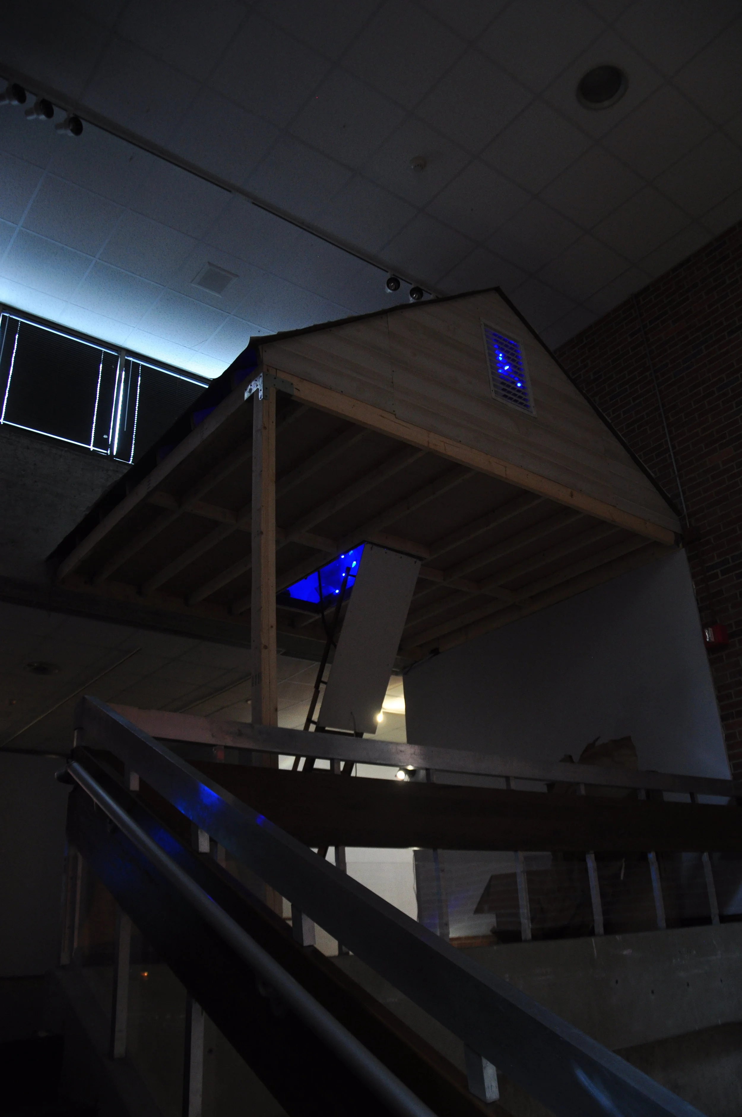 A replica attic was constructed in the stairwell and visitors were invited to ascend the ladder to peer into the attic. The movement of their torsos entering the attic triggered motion sensors that controlled a 1973 Cannonball train set that encircled the space and audio tracks. A small video camera was hidden amongst the things in the attic and transmitted video to the televisions on the ground floor. The resulting images on the television were a live video feed from the point of view of the things in the attic. When no viewer was in the attic, the image was static — as soon as a viewer entered the attic, the attic was brought to life.